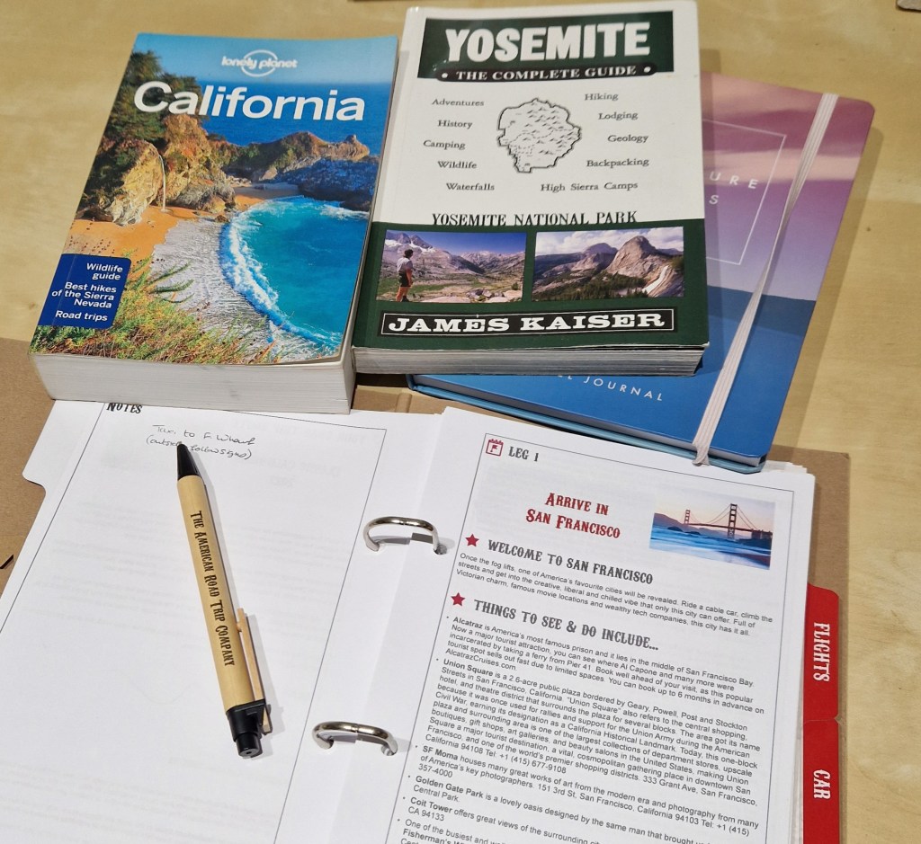 Now we had the bare bones of our trip in place, the flights, accommodation, transport, and essential tickets, it was time to pad out the itinerary. This will be different for everyone, interests, time of year, age of travellers and weather conditions will all vary, so I won’t go into great detail here, but how you find the information may be useful. The American Road Trip Company send out a trip pack, which includes the following